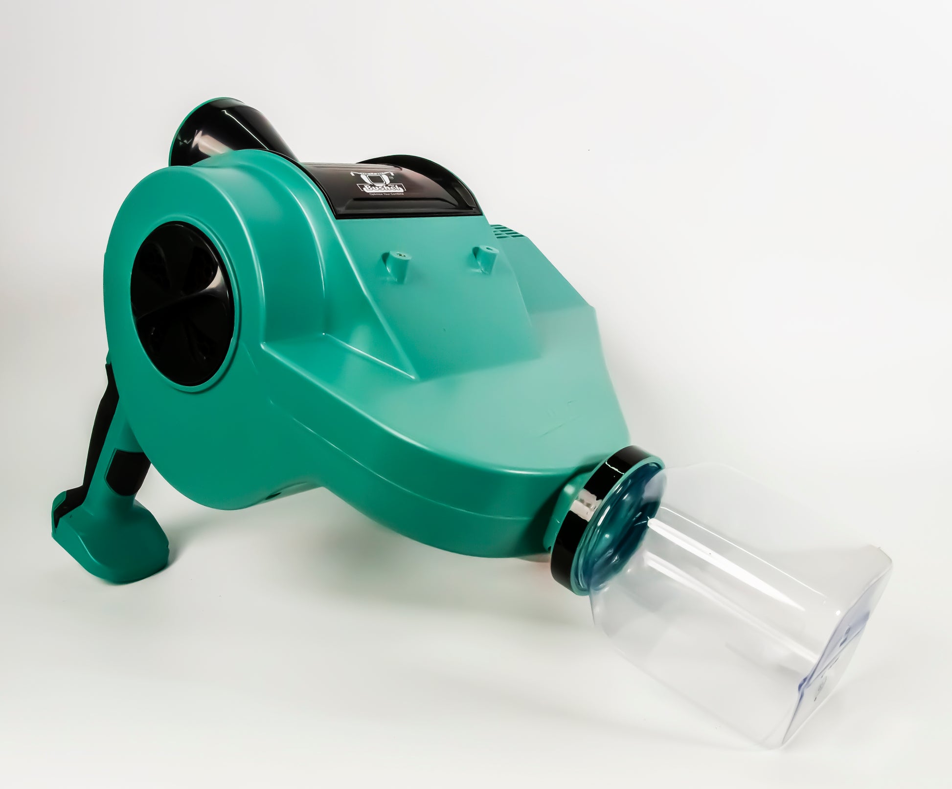 This self-contained unit comes with 4 interchangeable concaves (no tools required), a lithium-ion battery and a variable-speed brushless motor.
